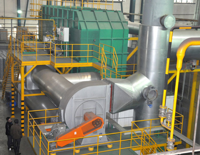 有機(jī)廢氣首先經(jīng)過蓄熱室預(yù)熱,然后進(jìn)入氧化室,加熱升溫到800℃左右,使廢氣中的VOCs氧化分解成CO2和H2O;氧化后的高熱氣體再通過另一個(gè)蓄熱室熱處理,然后煙氣排出RTO系統(tǒng)。這個(gè)過程不斷循環(huán)再生,每一個(gè)蓄熱室都是在輸入廢氣與排出處理過的氣體的模式間交替轉(zhuǎn)換。切換時(shí)間根據(jù)實(shí)際情況可以調(diào)整。